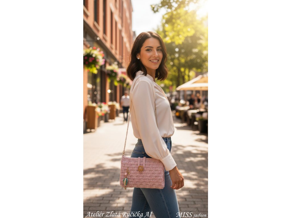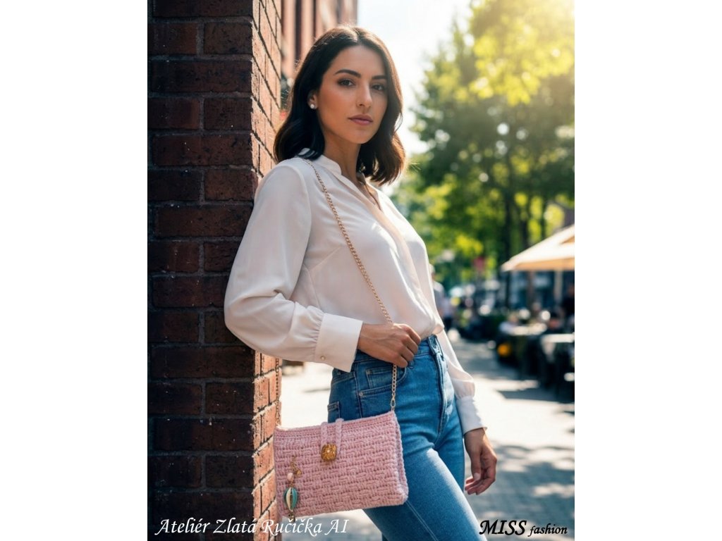 Jemná, elegantní a originální. Tato ručně háčkovaná kabelka v něžné růžové barvě je dokonalým doplňkem pro každou ženu, která miluje styl a jedinečnost.