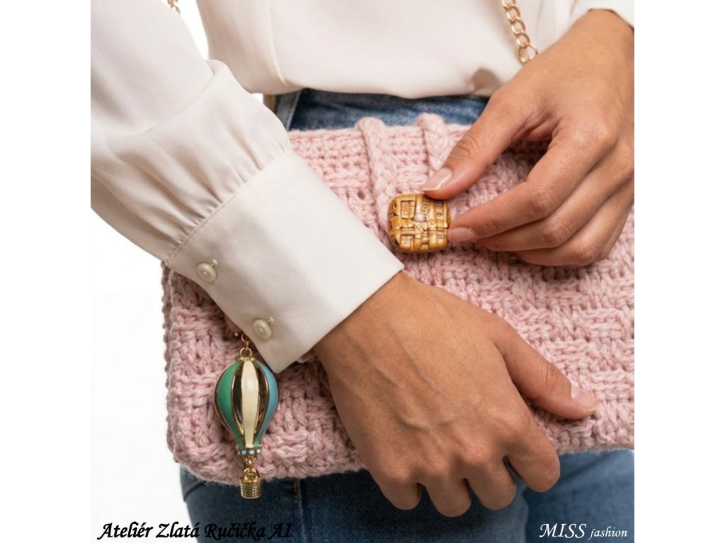 Detailní struktura proplétaného - velmi aktuálního - vzoru, ozdobné zapínání na ručně zdobený keramický konflík a přívěsek s balonkem dodávají kabelce hravý charakter. Je ideální na společenské akce, večeři, ale i jako stylový doplněk k letním šatům.