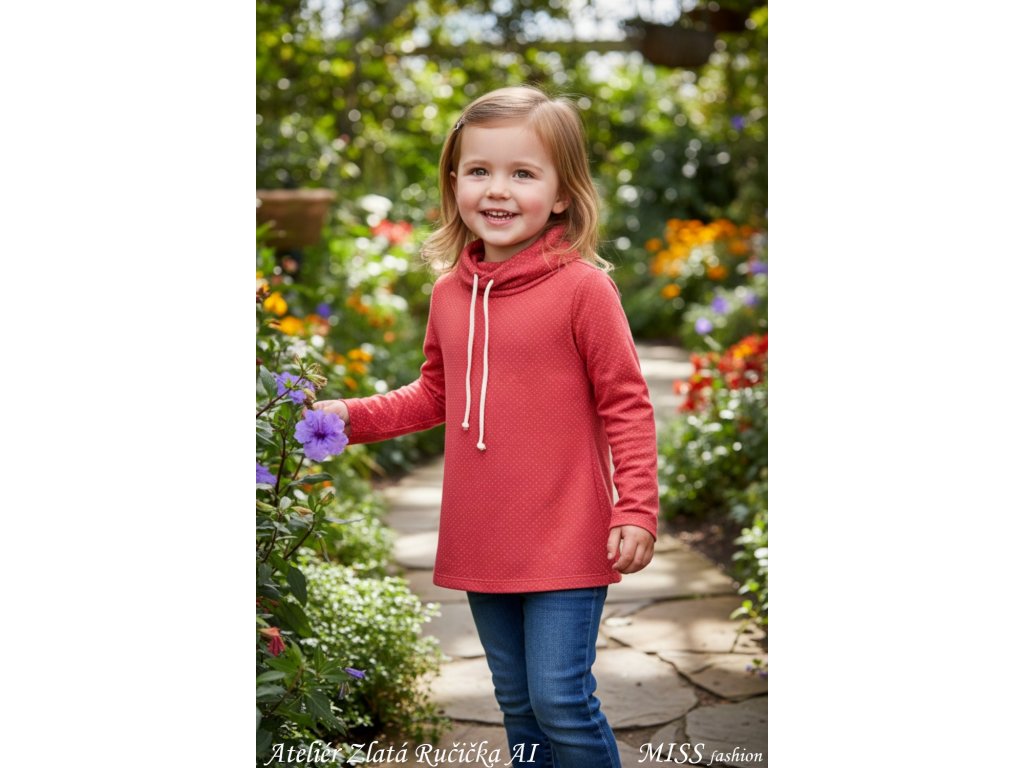 Vypracování: rovný střih se stojáčkem, ve kterém je šňůrka na zavázání, dlouhé rukávy bez nápletů, přes hlavu bez zapínání